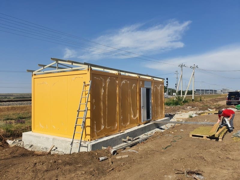 Маленькое здание для КПП выполнено на базе модулей блок-контейнера Звезда.